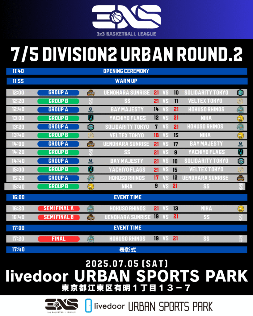 【試合速報】DIVISION2 URBAN CONFERENCE ROUND2