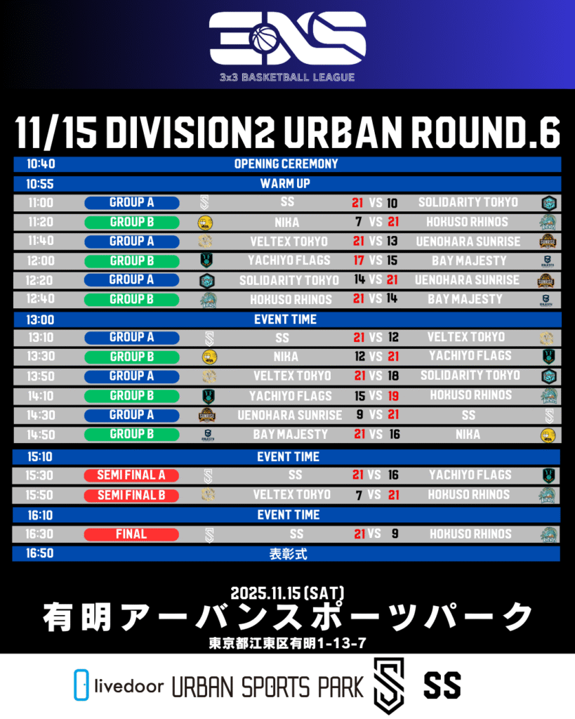 【試合速報】DIVISION2 URBAN CF ROUND6